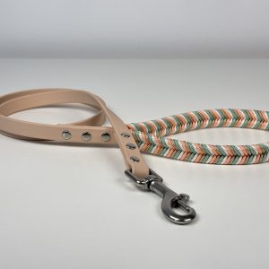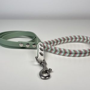 Firmeza y Estilo: El cuerpo de la correa está fabricado en Biothane, garantizando que sea 100% impermeable, fácil de limpiar y resistente a los olores.
